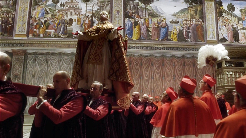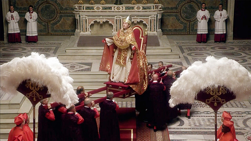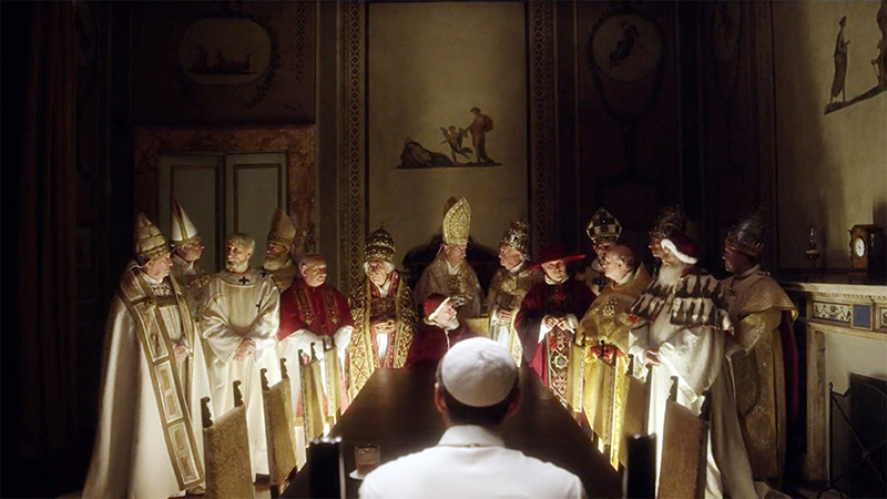 Между тем, "Молодой папа" - не сатира и не апология. Это художественное осмысление - вещь давно позабытая нашим телевидением, погрязшим в пропагандистских уловках и тошнотворном аниматорстве, рассчитанном на самую невзыскательную публику. Фильм не просто красиво снят, он в полном смысле этого слова живописен - режиссер Паоло Соррентино и оператор Лука Бигацци добились того, что многие сцены напоминают ожившие полотна старых мастеров, напоминая зрителю о том, что в Ватикане находится не только папская резиденция, но и одно из крупнейших в мире собраний живописи. Вот один из великолепных кадров - Пий XIII встречается с призраками своих предшественников.