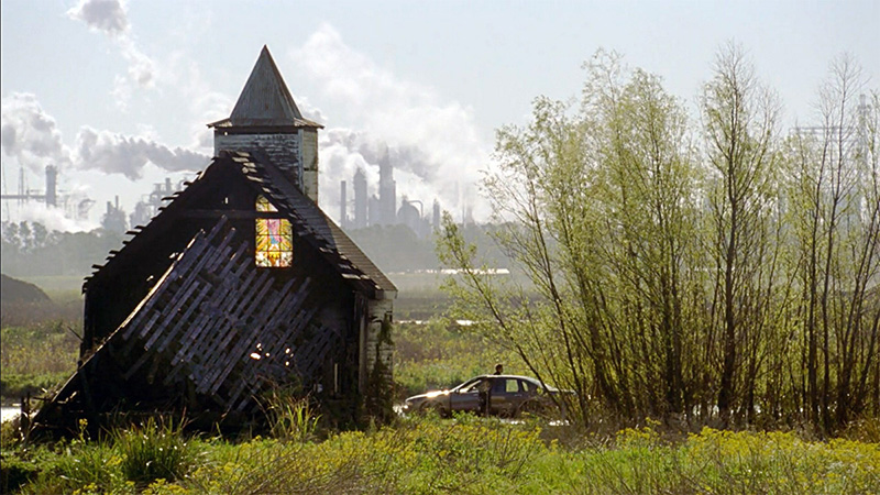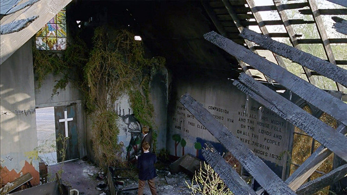 Некоторые кадры заставляют вспомнить о "Сталкере" Тарковского. Вот, например, сгоревшая церковь - декорация, вписанная в индустриальный пейзаж.